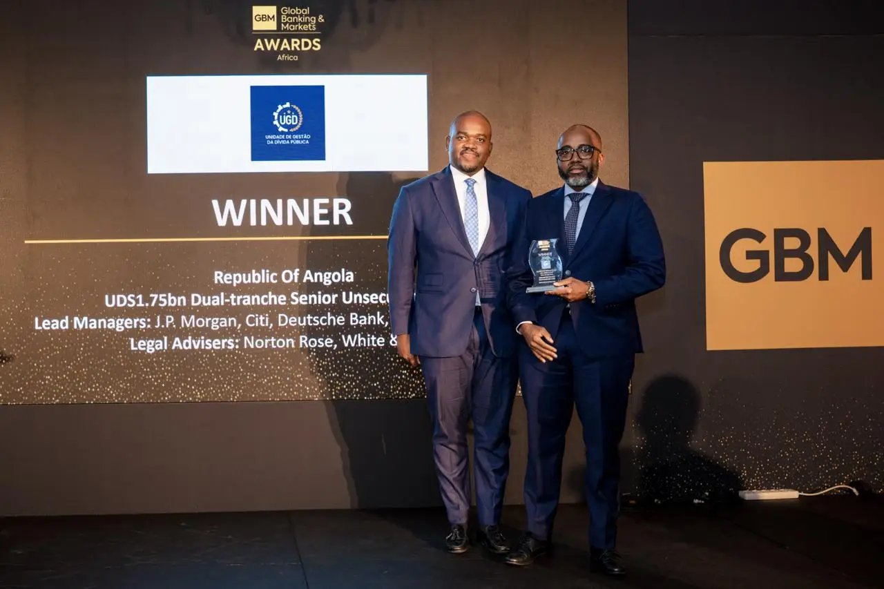 Angola foi distinguida com o troféu “Emissão de Eurobonds” durante a Global Banking & Markets Africa 2026, realizada na Cidade do Cabo, reconhecendo o impacto positivo das operações financeiras conduzidas em 2025. A premiação reforça a crescente credibilidade do país nos mercados internacionais de capitais.